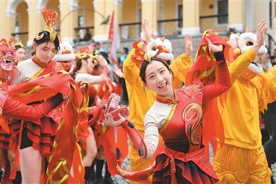 新华社澳门3月29日电(记者齐菲、郭雨祺)由澳门特区政府文化局等联合主办的2026澳门国际幻彩大巡游29日举行。大街小巷间,海内外表演队伍载歌载舞,尽显澳门多元文化荟萃的城市风采。